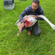 Junger Schwan aus Irrsee mit Angelhaken im Körper gerettet